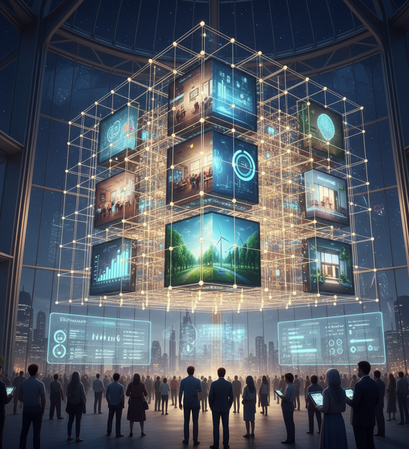 در این ساختار، هر خانه مدیریتی دارای سامانه مانیتورینگ عمومی است. تمامی دادهها، تصمیمات و بودجههای مرتبط با تلاقی دو حوزه، در مانیفست ثبت شده و برای همه شهروندان قابل مشاهده است. این شفافیت، امکان هرگونه پنهانکاری یا رانت را از بین میبرد؛ زیرا هر اختلالی در یک خانه، بلافاصله در خانههای مجاور و در کل شبکه ماتریس بازتاب پیدا میکند و توسط سیستم شناسایی میشود.