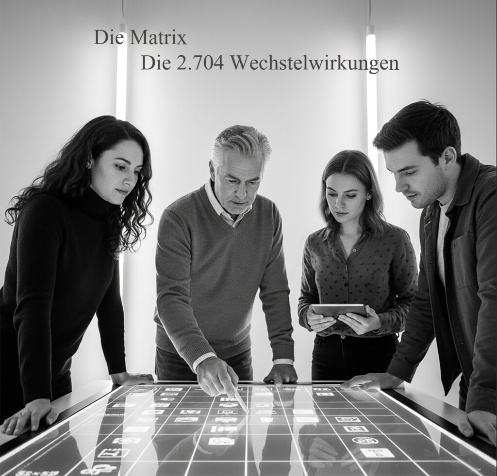با ضرب این پنجاهودو حوزه در یکدیگر، دو هزار و هفتصد و چهار خانه مدیریتی شکل میگیرد. هر خانه در ماتریس، محل تلاقی دو حوزه مستقل است و مأموریت آن، مدیریت تعامل و میزان اثرگذاری این دو حوزه بر یکدیگر است.